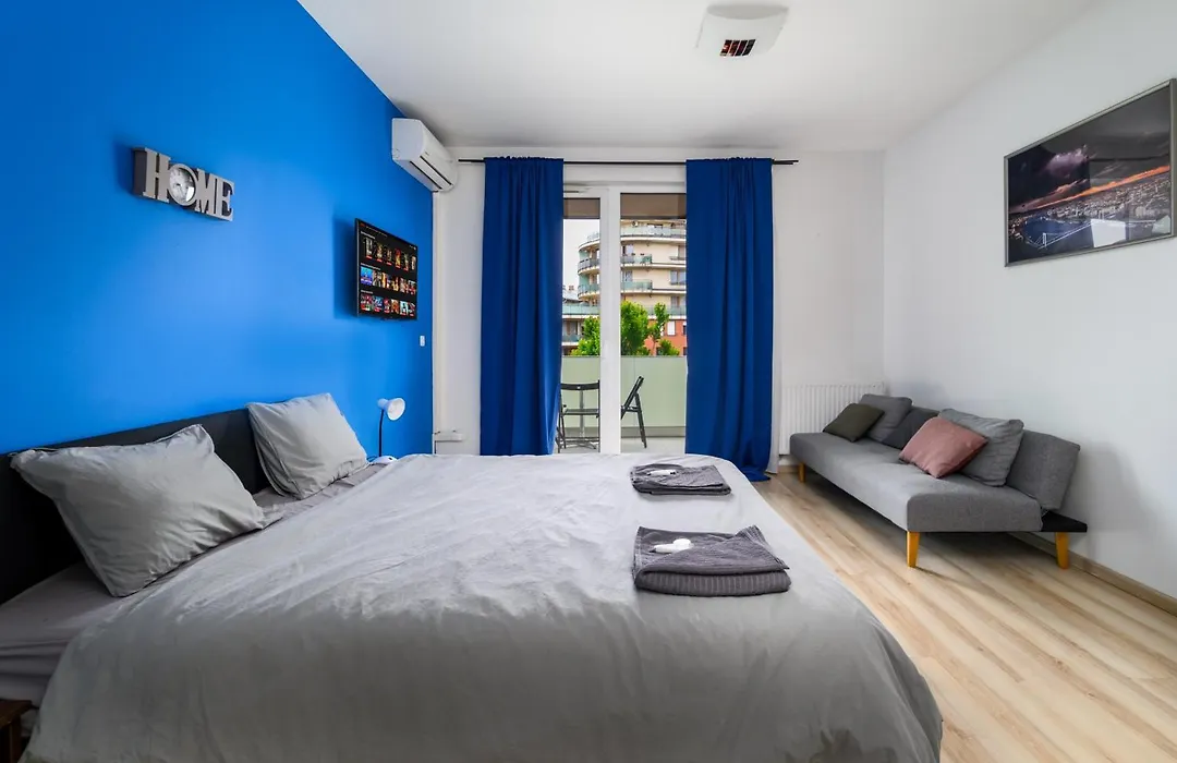 Along with an air conditioner, the 35 m² Park Residence Blue Suite- Free Parking is also equipped with a TV for a more enjoyable stay. Bathroom amenities comprise a separate toilet, a bath, and a shower, as well as hairdryers and bath sheets.
